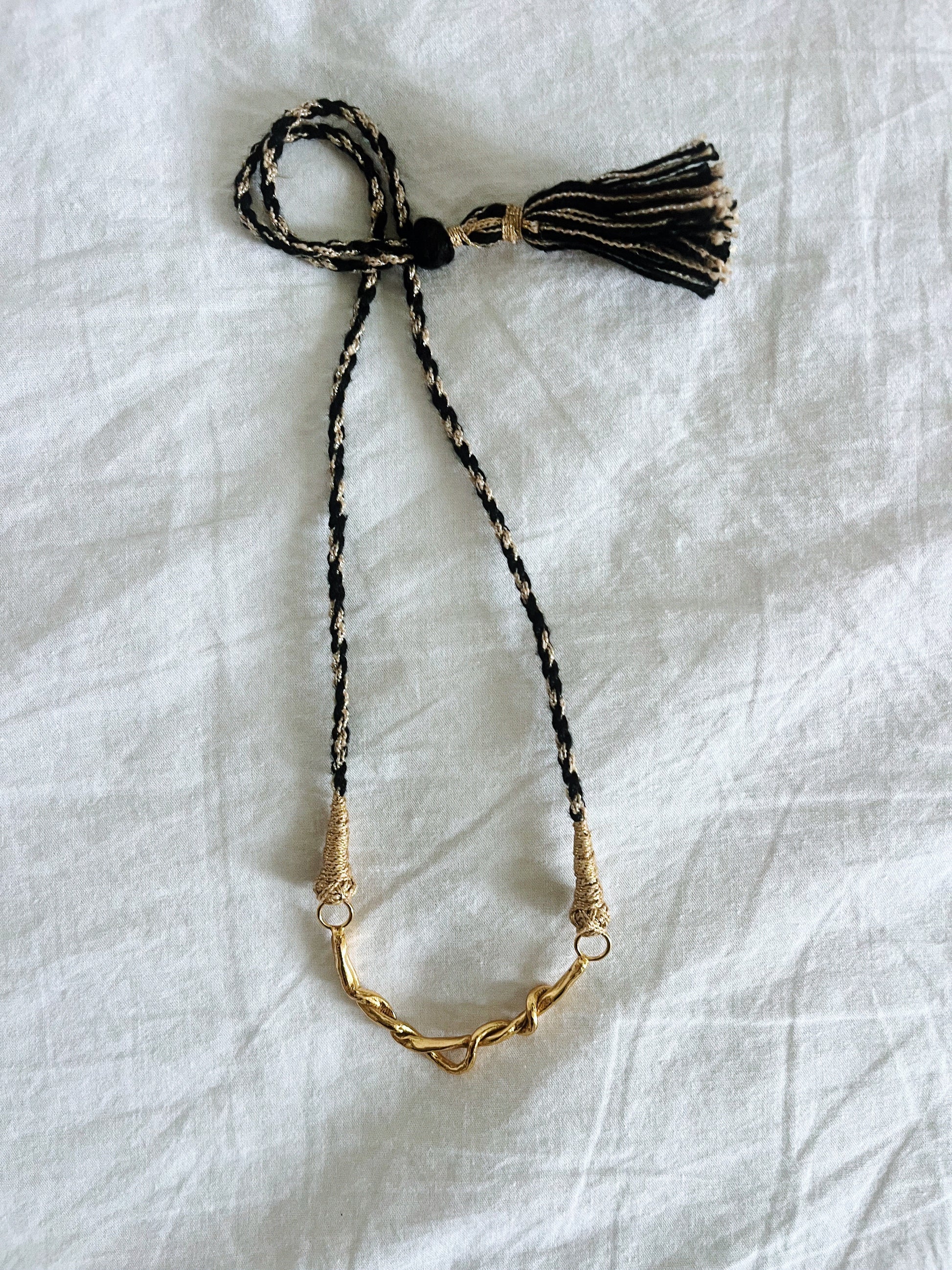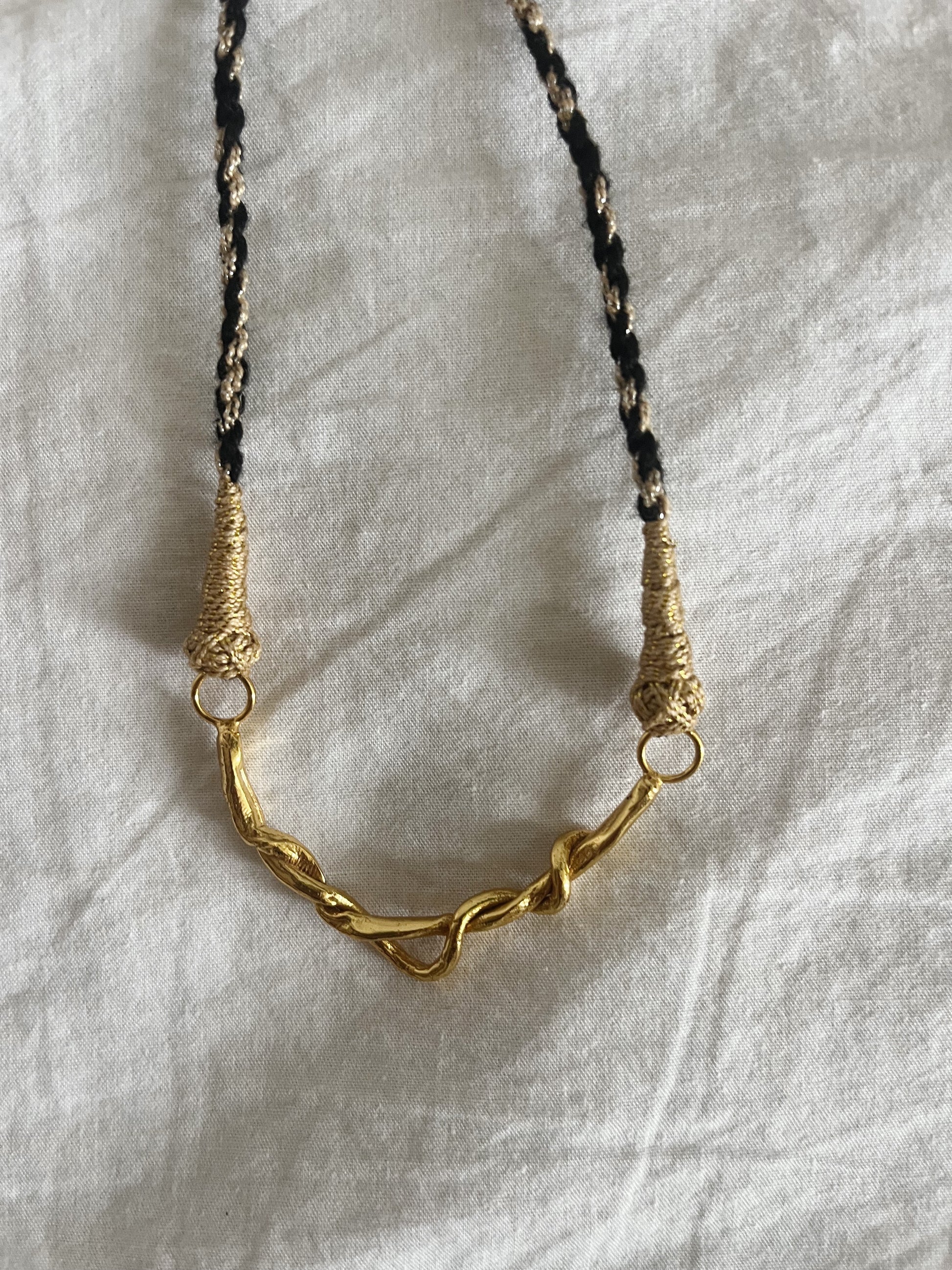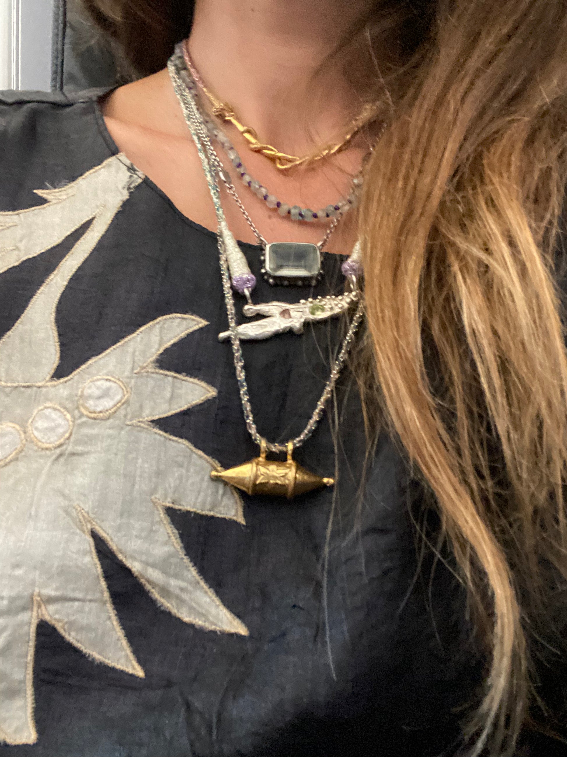 Necklace hand-sculpted in wax by me, made of brass with gold and silver plating and an aged finish.